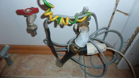Grái rafmagnsvírinn er hitavír fyrir vatnsinntak. Er bara tengdur að vetrarlagi. Ef þessi hitavír er tengdur, þá deilir hann rafmagnsinnstungu með þvottavélinni.
